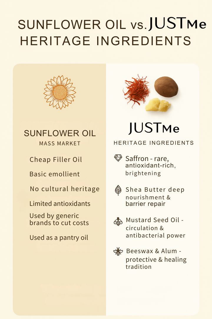 Butters & Waxes: Shea Butter (deeply moisturizes and softens), Beeswax (protects and locks in hydration), Coconut Oil (nourishes and smooths)